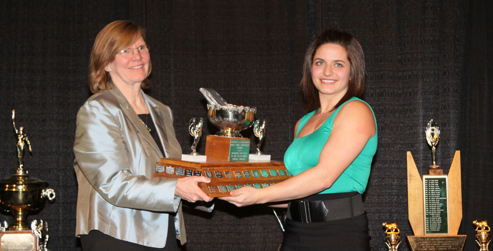 George was Canada West MVP for the 2009-10 season, when she led the conference with 28 goals and 46 points. The Saskatoon native was also a three-time Canada West All-Star (First Team in 2010 and 2011, Second Team in 2012) and a First Team All-Canadian in 2010 and 2011.